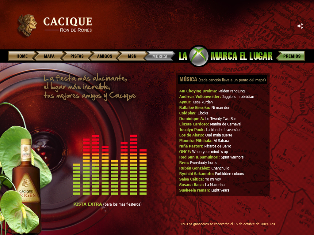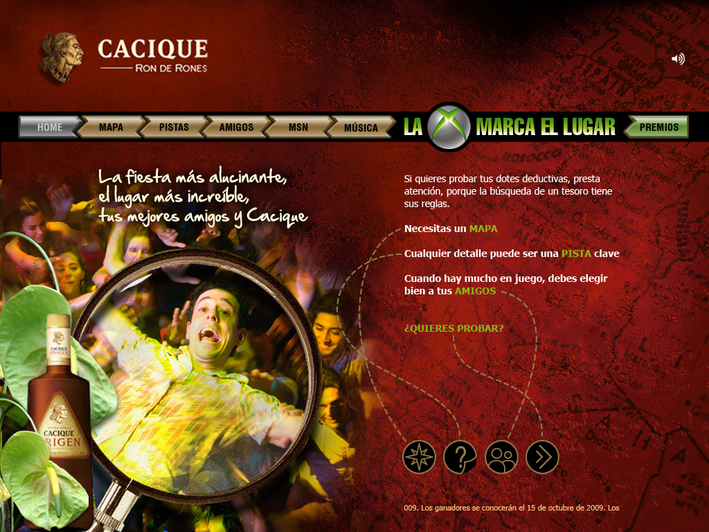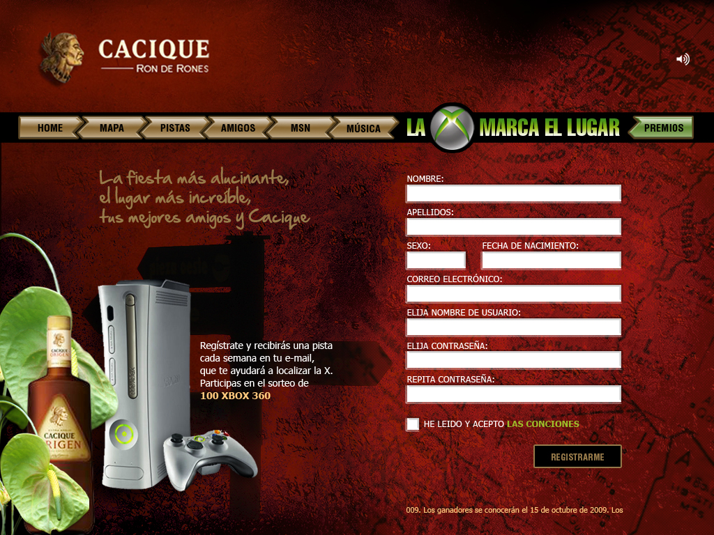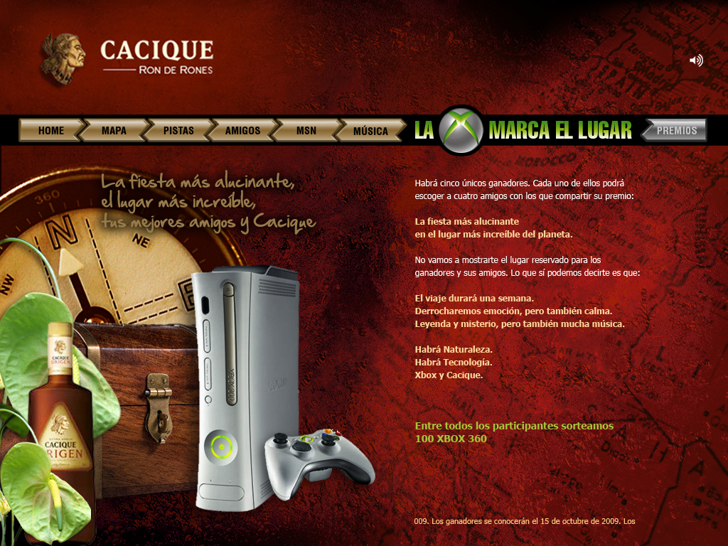 Acción de cross business online entre la marca de ron Cacique y las consolas de videojuegos X BOX. Creación de microsite y propuesta de incentivos y premios.