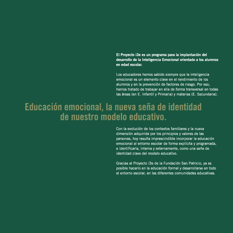 Folleto de la Fundación San Patricio para el Proyecto i3e. Inteligencia emocional en entornos escolares.